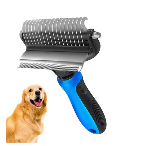 Cepillo Eliminador de Pelo 2 EN 1 El mejor cepillo que existe ahora en el mercado para disminuir la cantidad de pelos sueltos en tu hogar y ayudar en el cambio de pelaje de tu perro El pelo de nuestros perros es un evento natural No hay forma de eliminarla pero si hay una forma de no frustrarse en el proceso El cepillo reduce la pelecha hasta en un 90 El mejor cepillo que existe en este momento en el mercado de las mascotas y es la herramienta de predilección para profesionales de peluquer a canina Disponibles en todos los tama os de perro y espec fico para pelos tipo corto y largo Tu casa libre de pelos Tu amigo feliz La vida que quieres FUNCIONA Caracter sticas principales Un borde de acero inoxidable especial para pelo corto que remueve el pelo suelto de manera f cil y segura sin da ar