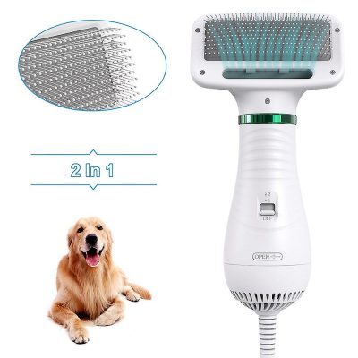 Pr ctico y moderno secador y cepillo para mascotas 2 en 1 para mantener el pelaje de tu mascota siempre brillante y bien peinado ya que te permite peinar y secar el pelaje al mismo tiempo Este producto ingenioso combina secador de pelo y peine para mascotas Puede ajustar la fuerza del secador Puede ajustar la fuerza del viento de acuerdo a la talla de la mascota y secar y peinar rpidamente Cepillo de acero RVS con protecci n elimina enredos suciedad de la piel muerta el aseo es como un masaje y un diseño o superior para protege la piel de tus mascotas El Peine de aguja es flexible y duradero El cable de alimentación tiene 130 cm de largo seguro y ecológico con una potencia m xima de aproximadamente 300W con base giratoria antienrredos Es suave y no da a la piel permitiendo que tu mascota d